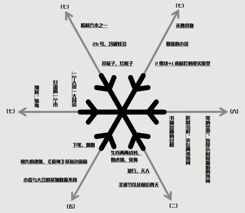般。此时想起关于雪花的一句话——草木之花多五出,雪花独有六出!