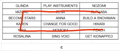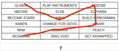 得到里程碑:TRACE COLUMNS IN GRID。里程碑指示观察每列在表格中的轨迹。按照给出的顺序在表格中画出:
