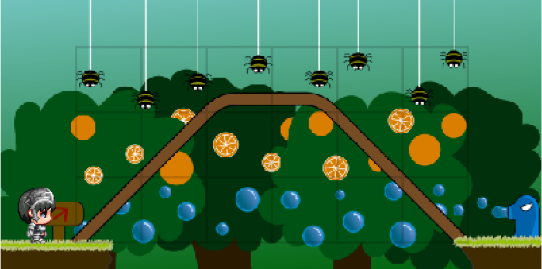 邪恶的巨龙掳走了城堡内的公主们,你作为王国的勇士,奉命踏上拯救公主的旅途。不过在你面前的独木桥上,一群蜘蛛似乎拦住了你的去路。